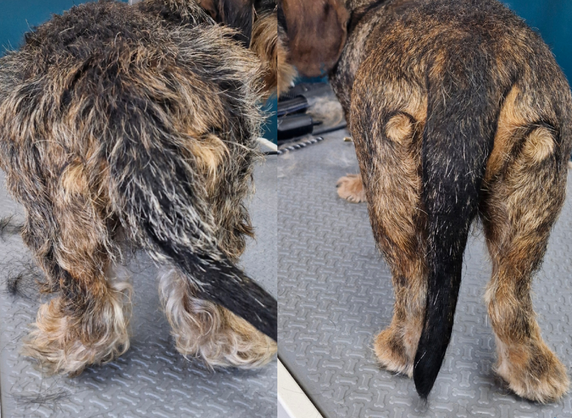 Er is niets mooier dan een blije, frisse hond na een geslaagde trimbeurt! Neem een kijkje bij de voor- en na foto's van honden die ik met liefde heb verzorgd.